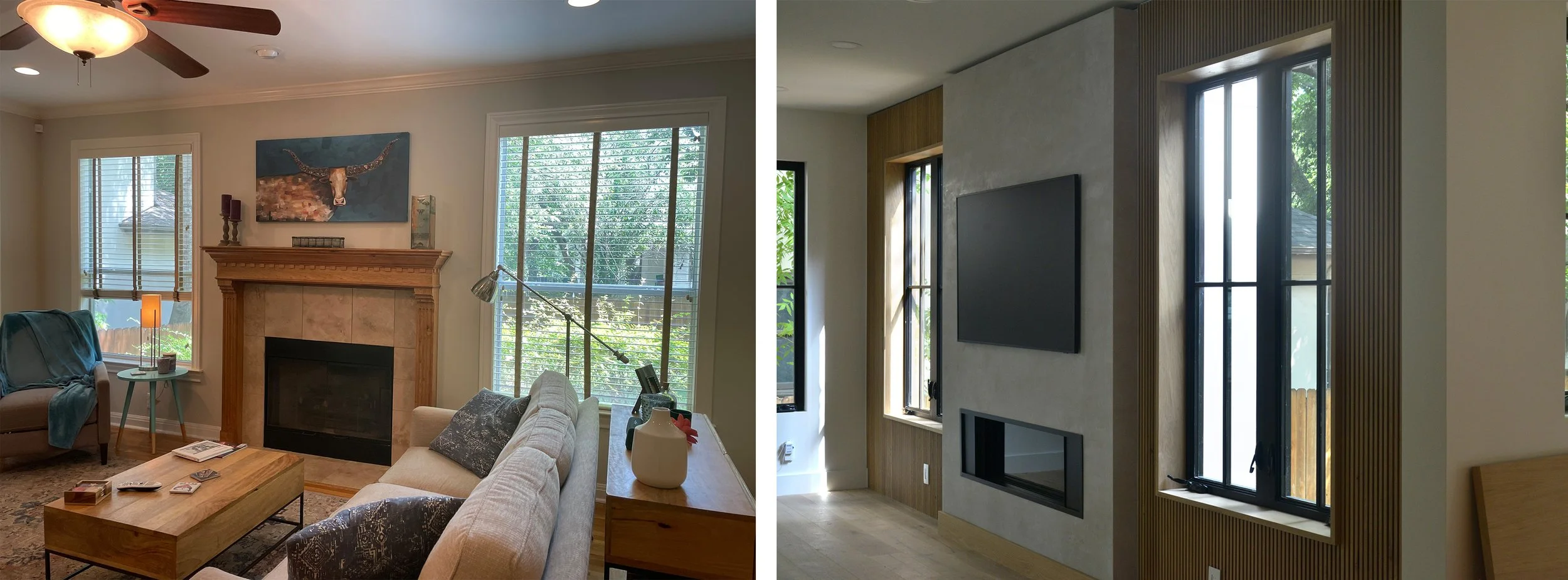 Remodel and addition to a single family home in the Bouldin Creek neighborhood of Austin, TX. The house was completely rehabilitated, inside and out. DOB&EEL were tasked with designing a new front entry, interior stair, fireplace, back deck, and helping with the overall exterior of the project.