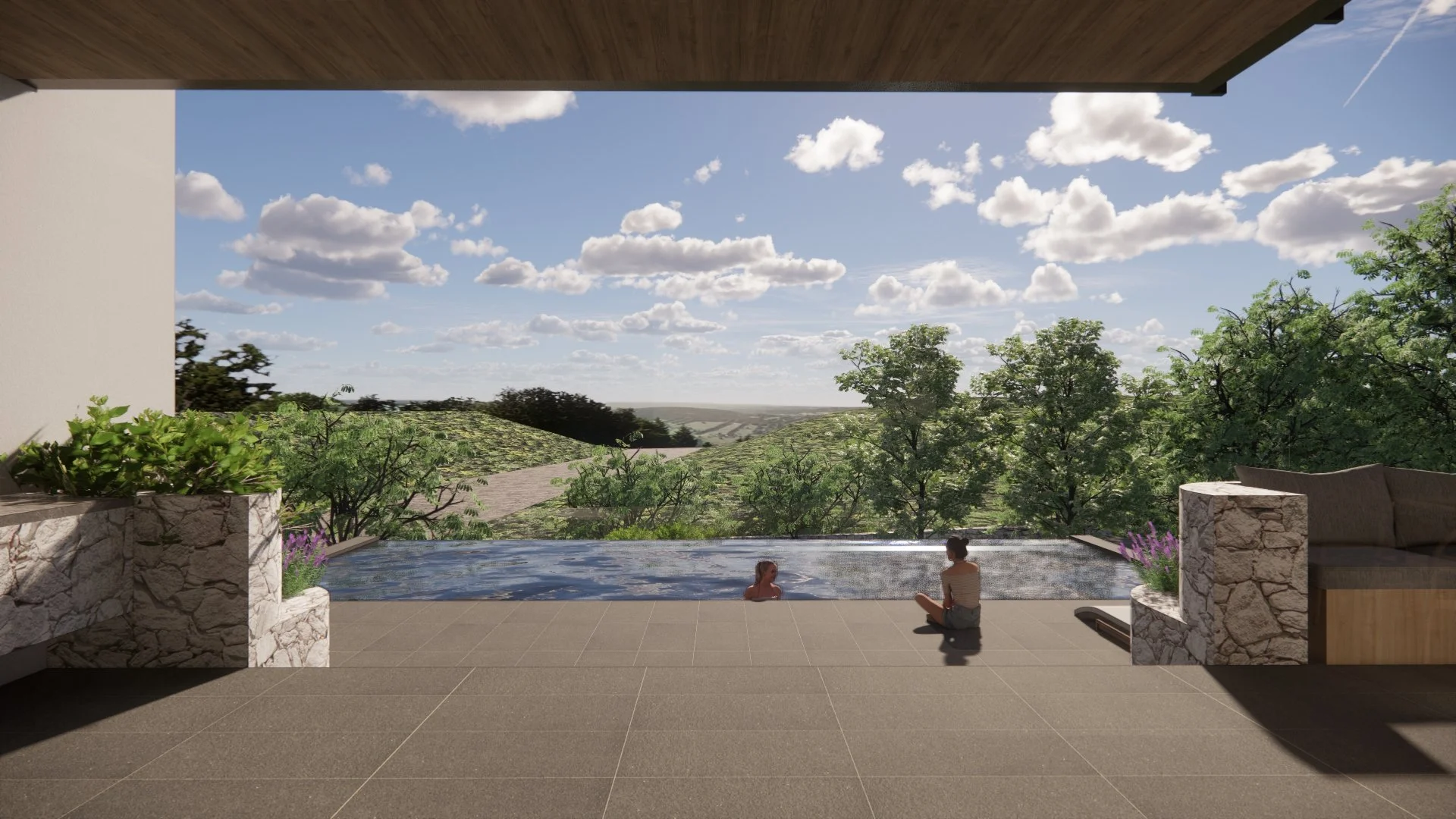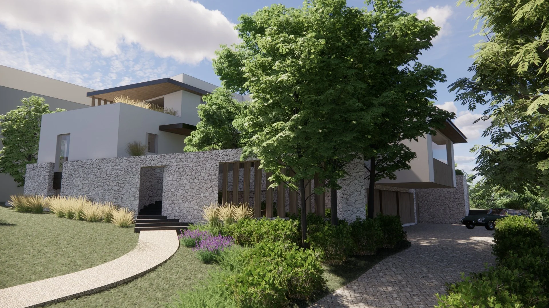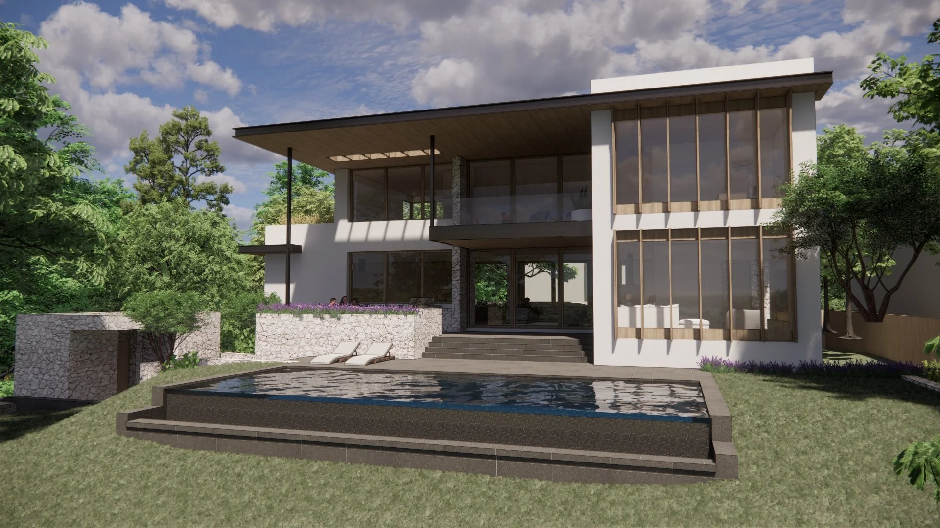 DESCRIPTION: A new home located in the Barton Hills neighborhood of Austin, just a few minutes drive from downtown. The site is situated on the edge of a cliff overlooking the iconic Barton Creek Flats, a local landmark. The house takes its design cues from the local geology; limestone cliffs with curving fissures and caves created by water. The back of the house opens to incredible views to the west. More info coming soon.