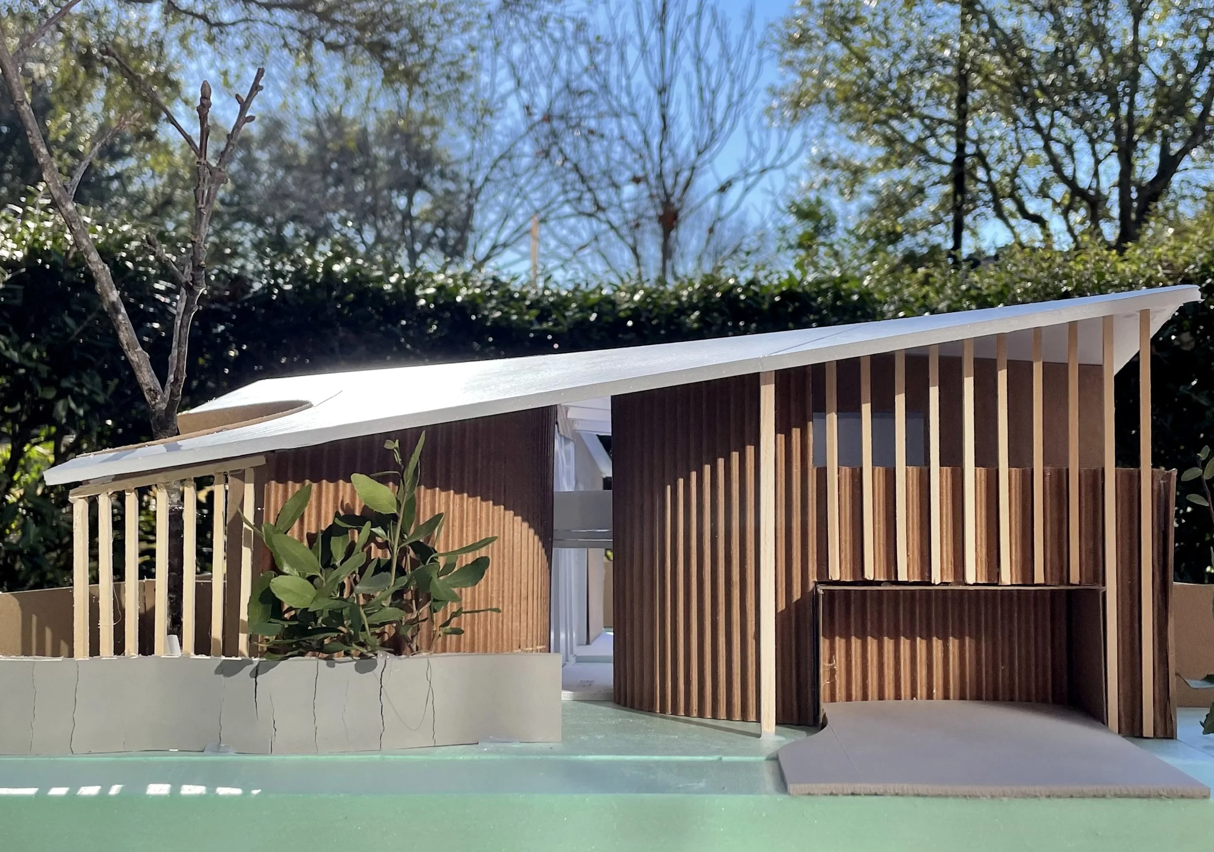 DESCRIPTION: A new home located in the Allandale neighborhood of Austin, TX. We envisioned this home as a remix of archetypes: the ranch house and the mid-century modern house are sampled, recombined and reimagined to fit modern life. Inside there is a double height atrium garden to bring nature indoors, along with multiple other decks and indoor/outdoor spaces. Physical study models and 3d concept models shown here. Under development, more info coming soon.